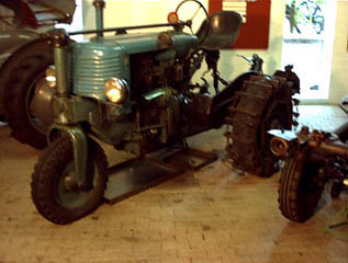 Lanz, ca. 1935, 1 Zylinder Glühkopfmotor, 4723 ccm, Umlaufkühlung, 15 PS, 3 Vorwärts-, 1 Rückwärtsgang, 19,8 km/h, 2200kg, mit Zapfwelle und Ackerschiene |